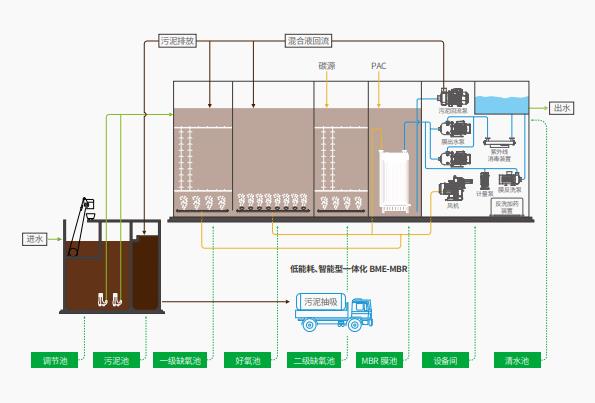 BME-MBR一體化污水處理設備工藝流程圖